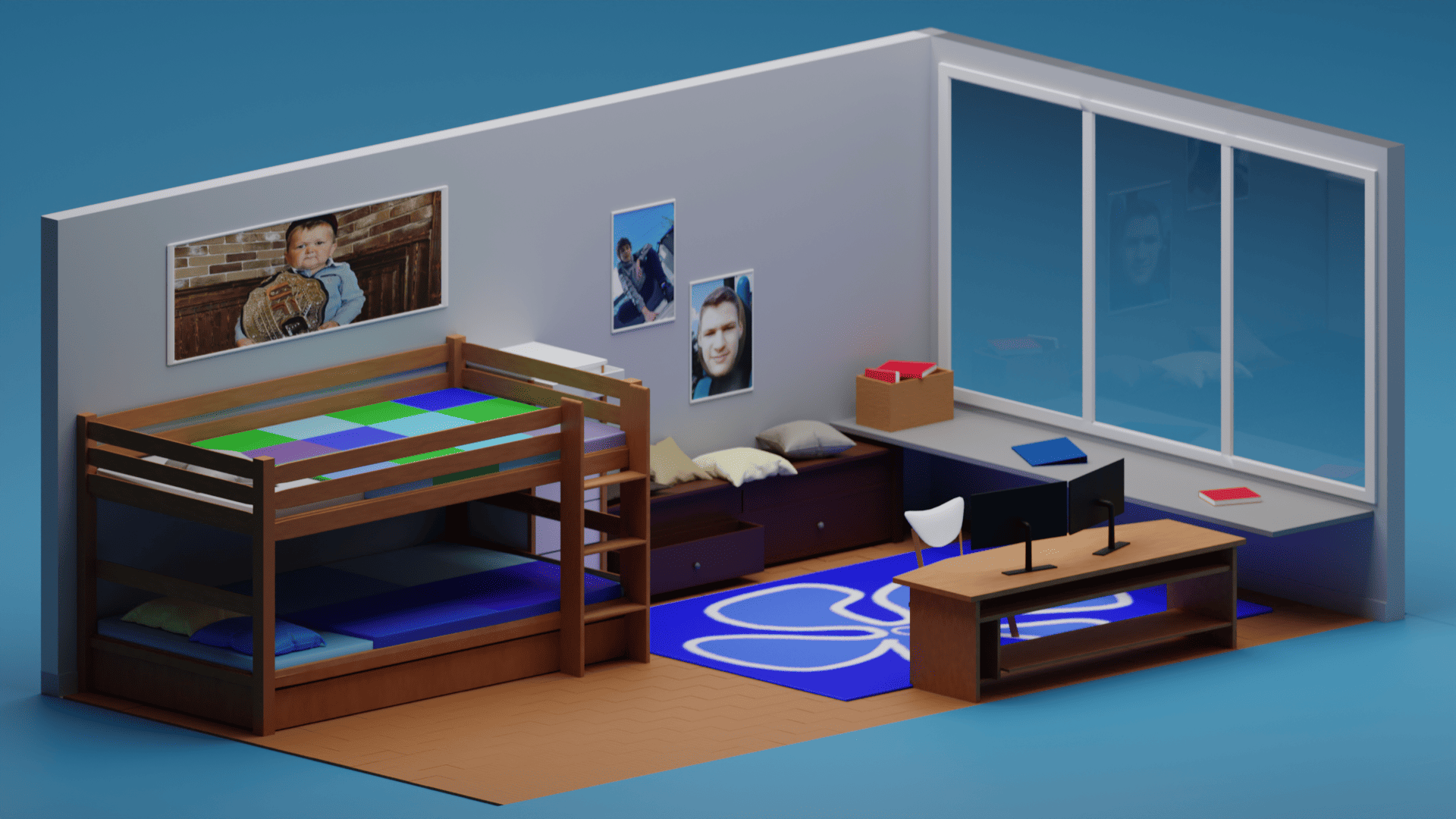 Ce projet consiste en la création d’une modélisation 3D réaliste de ma chambre, réalisée entièrement sur Blender. L’objectif était de recréer l’espace dans ses moindres détails afin d’obtenir une reproduction fidèle et immersive.
